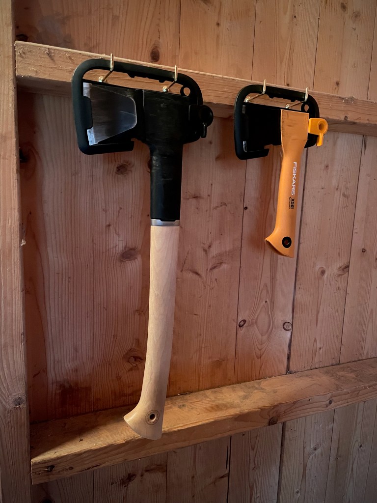 I vedboden hemma har vi än så länge två yxor. Den lilla är perfekt för att kvista och spänta men den har ingen tyngd. Har jag ett större stycke ved behöver jag klyvyxan och med den tar det mig bara ett ögonblick att göra det som den mindre handyxan skulle behöva kämpa med en lång stund, om det ens vore möjligt att uppnå samma resultat. Det vore dock farligt att försöka dela små stycken med klyvyxan.